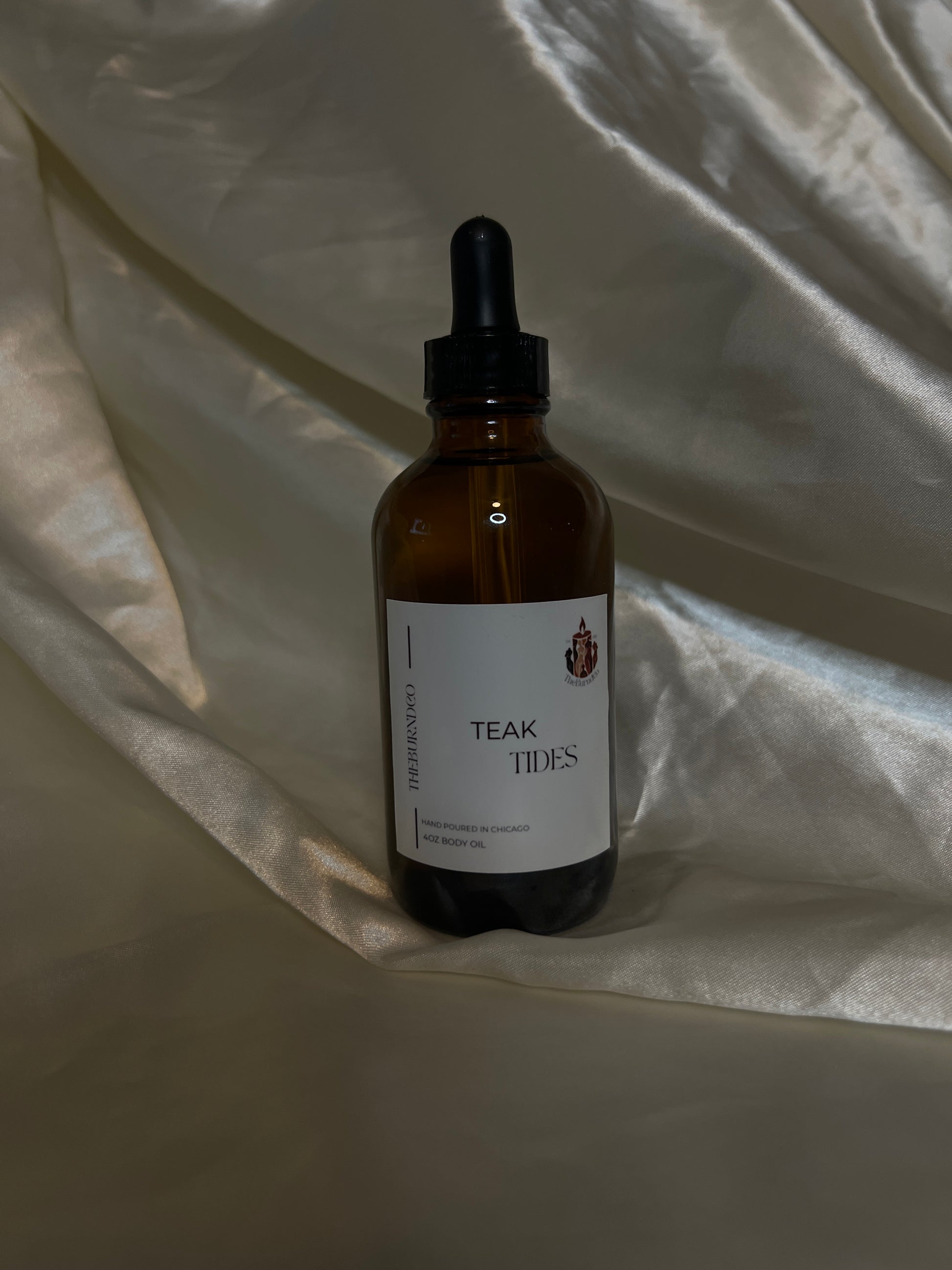 Drift into depth with Teak & Tides—a luxurious body oil that nourishes the skin and leaves behind a smoldering trail of spice, wood, and warmth.